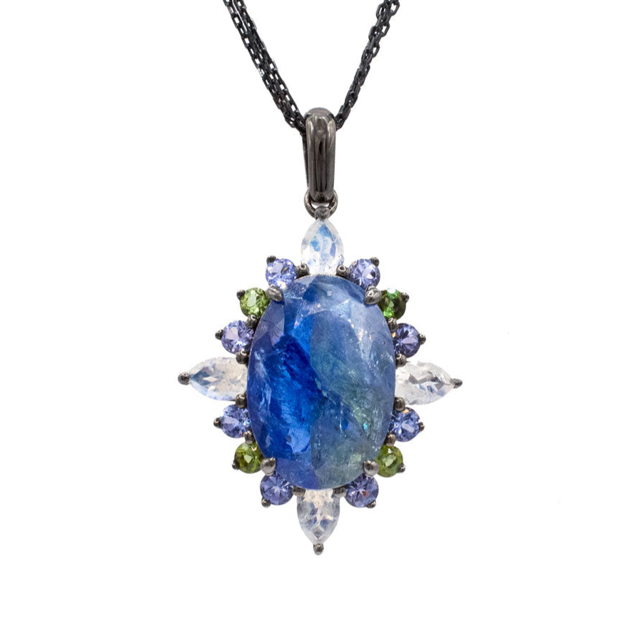 14.86 Carat Tanzanite and Multi-Gemstone Pendant Sterling Silver