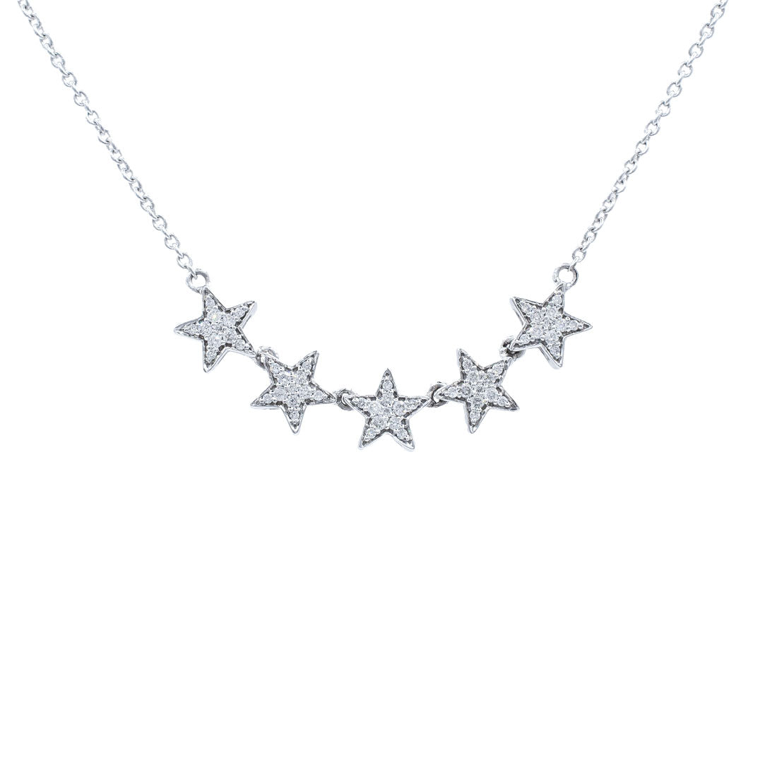 0.19 Carat Pavé Diamond Five-Star Necklace 14K White Gold