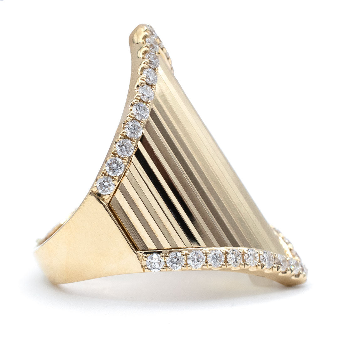 0.66 Carat Diamond Fluted Shield Ring 14K Yellow Gold