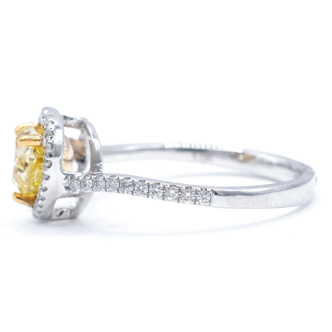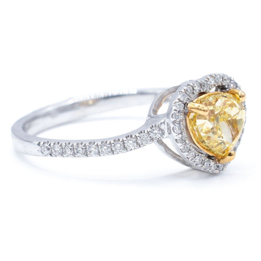 1.01 Carat Fancy Yellow Heart-Diamond Halo Engagement Ring 18K White Gold